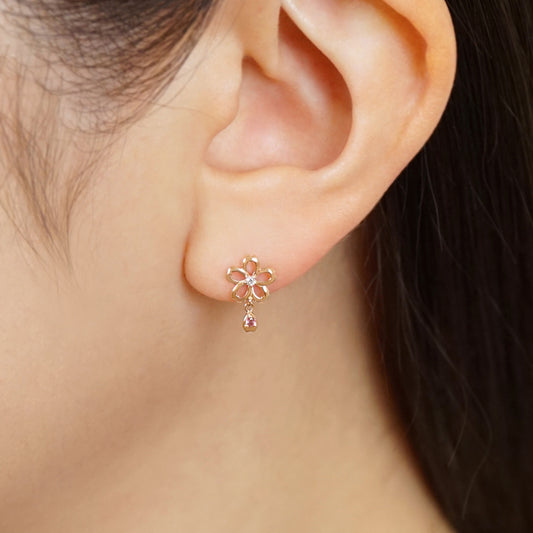[Birth Flower Jewelry] April - Cherry Blossoms Openwork Earrings (18K/10K Rose Gold)