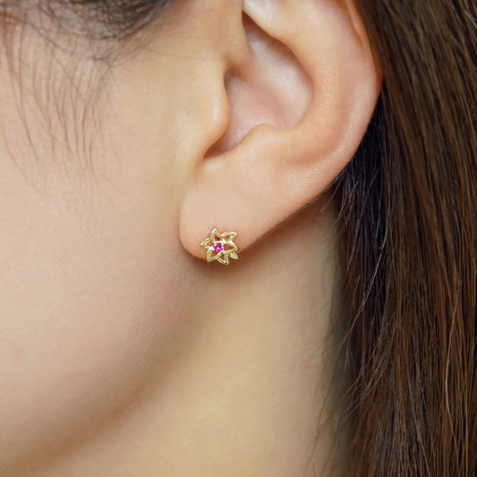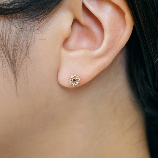 [Birth Flower Jewelry] September - Gentian Openwork Earrings (18K/10K Yellow Gold)