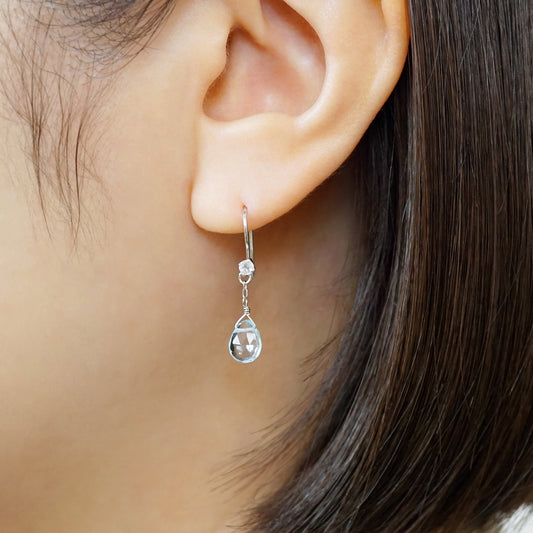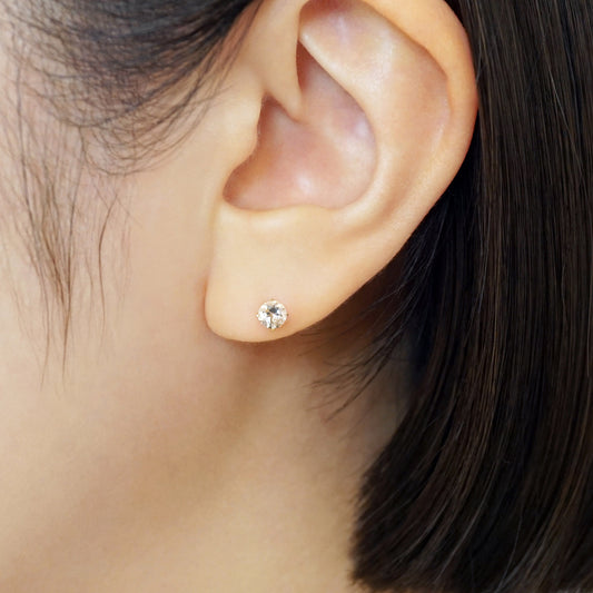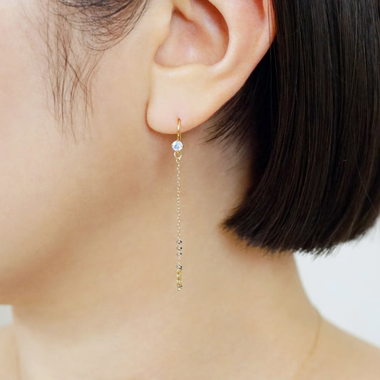 [Second Earrings] 18K White Sapphire Earrings (Yellow Gold)