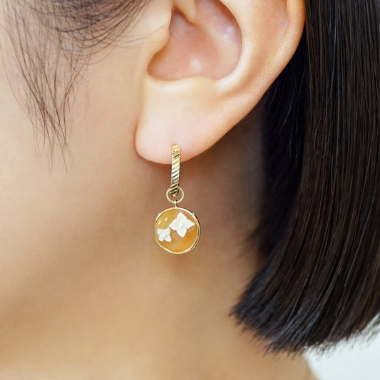 [Palette] 10K Shell Cameo Flower Earrings Set (Yellow Gold)
