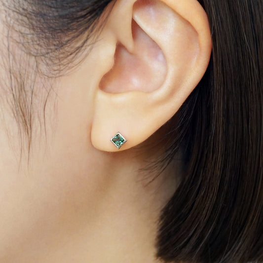 [Second Earrings] Platinum Green Quartz Square Earrings