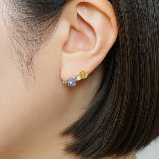 [Solo Earring] 10K / 925 Sterling Silver Blue Quartz Nemophila Single Earring