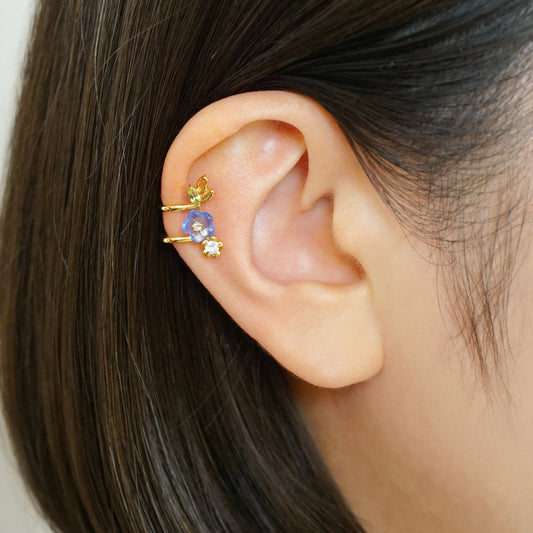 925 Sterling Silver Blue Quartz Nemophila Ear Cuff