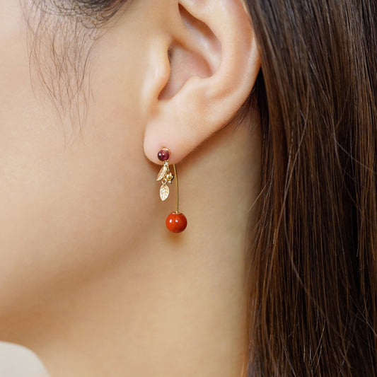 [Solo Earring] 18K/10K Cherry Swinging Single Earring (Yellow Gold)