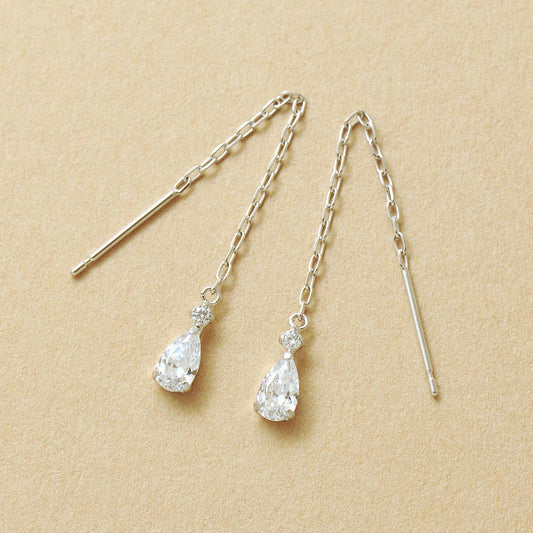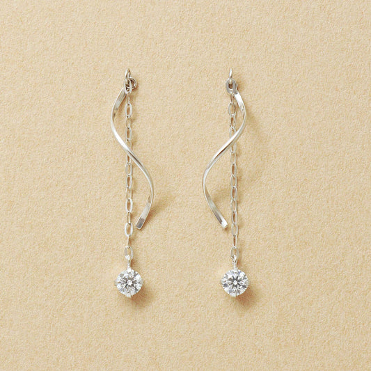 10K Glittering Twisted Dangle Earrings (White Gold)