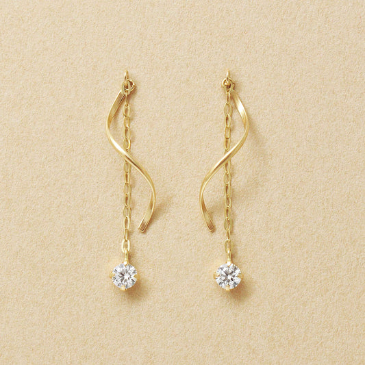 10K Glittering Twisted Dangle Earrings (Yellow Gold)