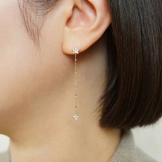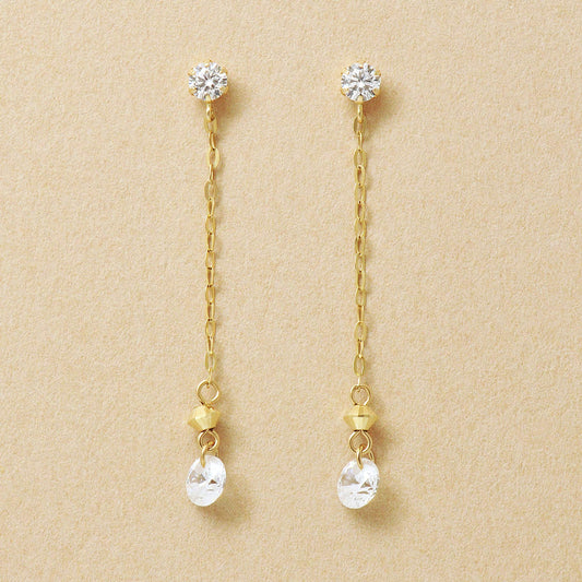 10K Glittering Drop Dangle Earrings (Yellow Gold)