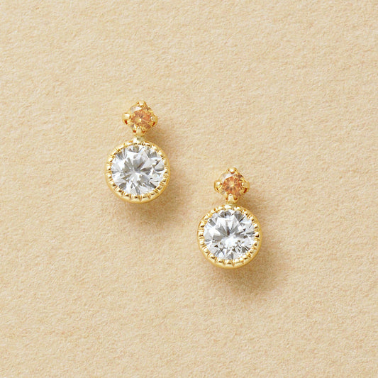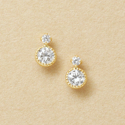 10K Clear Color Circle Stud Earrings (Yellow Gold)