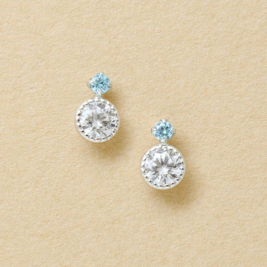 10K Light Blue Color Circle Stud Earrings (White Gold)