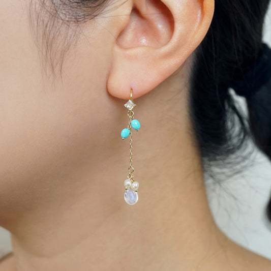[Palette] 18K/10K Blue Moonstone Charm Set Earrings [Prism] (Yellow Gold)