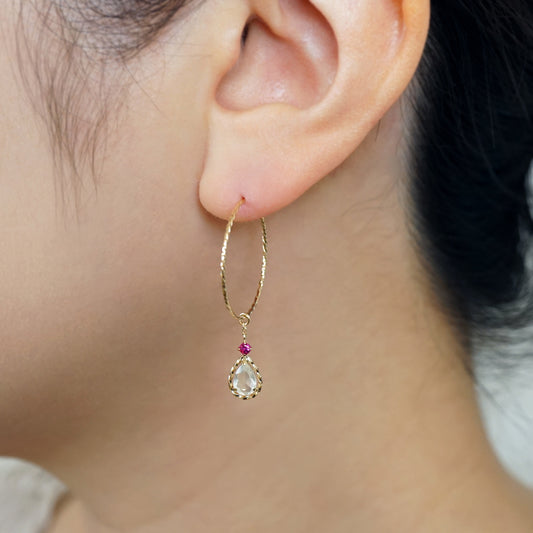 [Palette] 10K Ruby x Moonstone Charms (Yellow Gold)