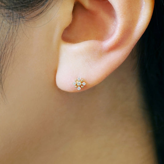 [Second Earrings] 18K Mini Flower Earrings (Yellow Gold)