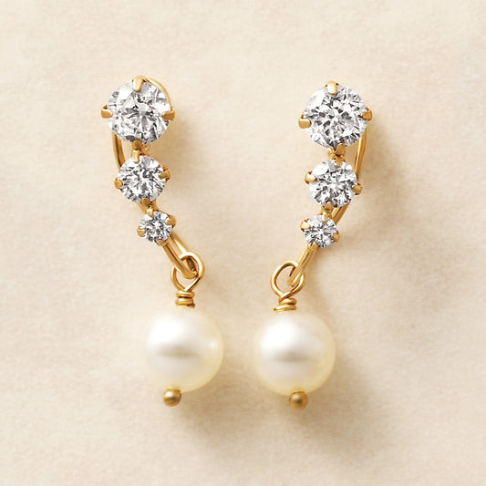 [Airy Clip-On Earrings] Swinging Pearl Earrings (10K Yellow Gold)