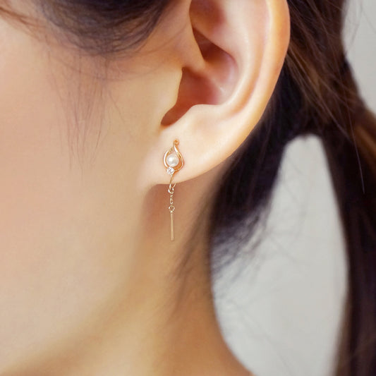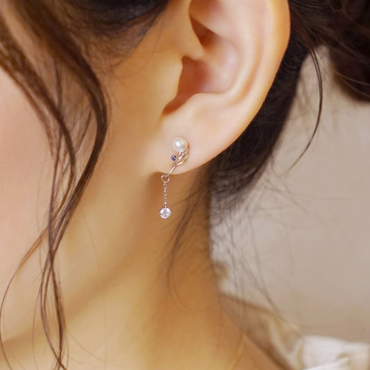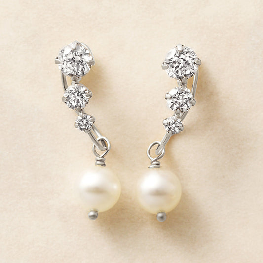 [Airy Clip-On Earrings] Swinging Pearl Earrings (10K White Gold)