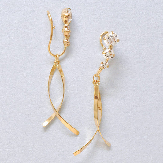 [Airy Clip-On Earrings] Twisted Swinging Earrings (10K Yellow Gold)