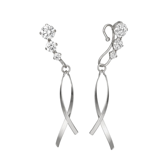[Airy Clip-On Earrings] Twisted Swinging Earrings (10K White Gold)