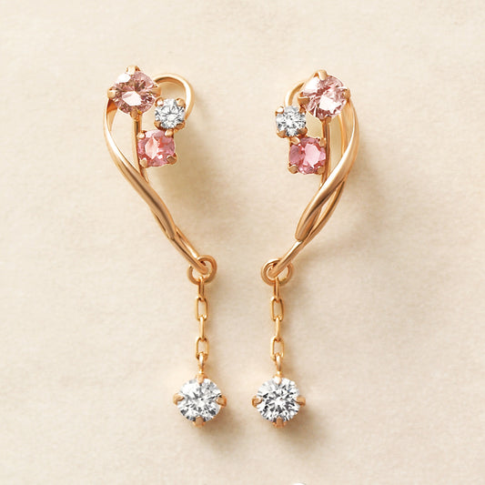 [Airy Clip-On Earrings] Pink Tourmaline Swinging Earrings (10K Rose Gold)