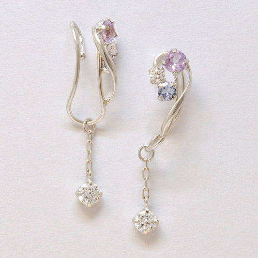 [Airy Clip-On Earrings] Tanzanite Swinging Earrings (10K White Gold)