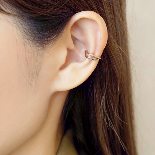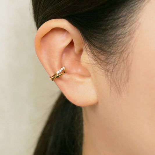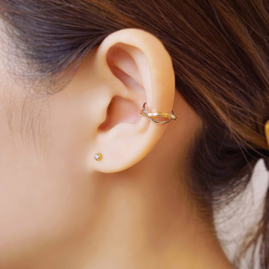 10K Gold Bicolor Ear Cuff (White Gold / Yellow Gold)