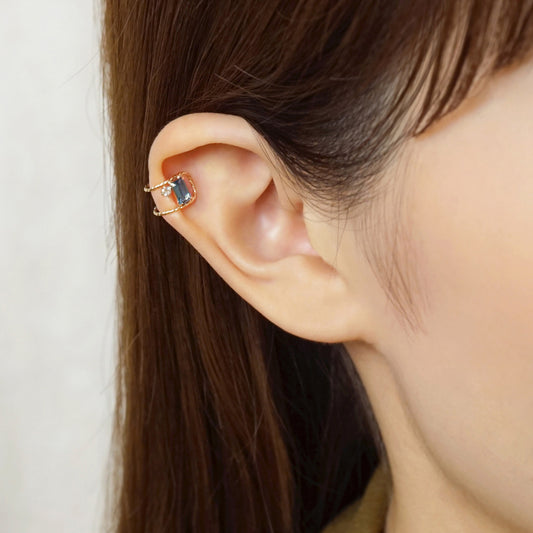 10K Yellow Gold London Blue Topaz Baguette Cut Ear Cuff