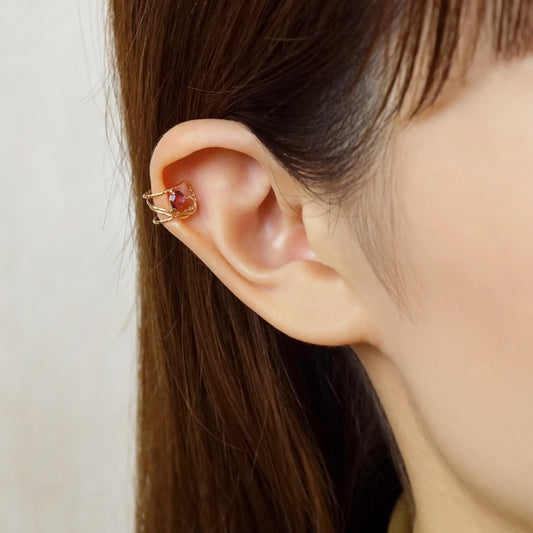 10K Yellow Gold Garnet Ivy Ear Cuff