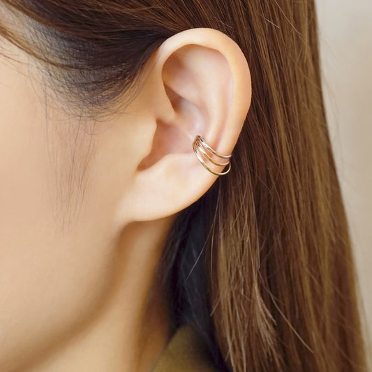 10K Gold 3-Color Ear Cuff (White Gold / Yellow Gold / Rose Gold)