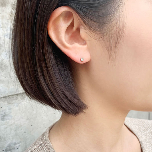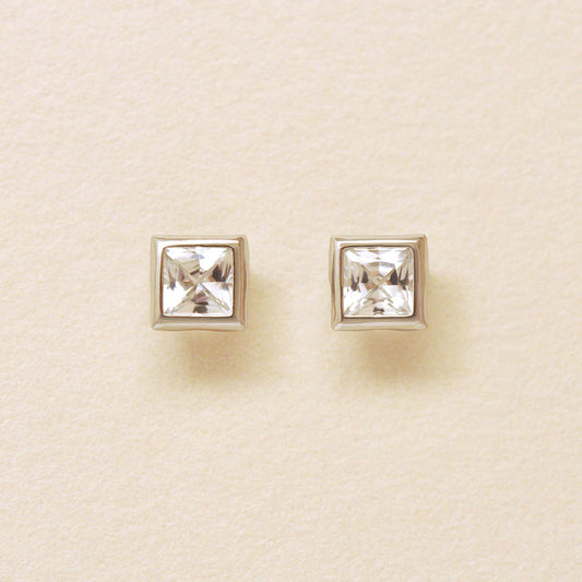 [Second Earrings] Platinum White Sapphire Square Earrings