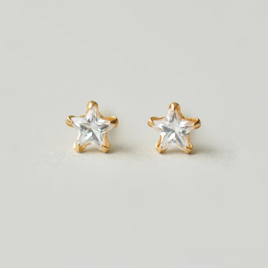[Second Earrings] 18K Yellow Gold Star Cut Clear Cubic Zirconia Earrings