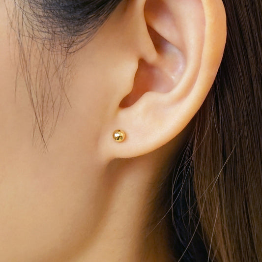 [Second Earrings] 18K Yellow Gold Mirror Ball Earrings (Φ4mm)