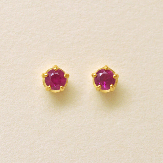 [Second Earrings] 18K Yellow Gold Ruby Earrings (Φ3mm)