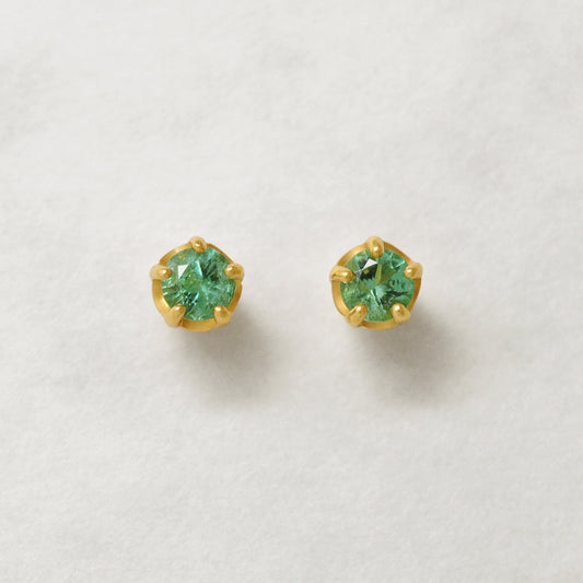 [Second Earrings] 18K Yellow Gold Emerald Earrings (Φ3mm)