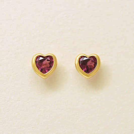 [Second Earrings] 18K Yellow Gold Rhodolite Garnet Heart Cut Earrings
