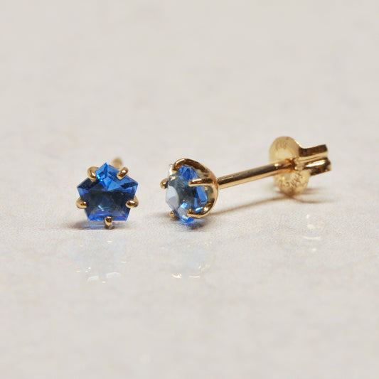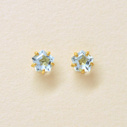 [Second Earrings] 18K Yellow Gold Blue Topaz Pentagon Cut Earrings