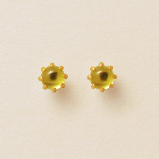 [Second Earrings] 18K Yellow Gold Orange Moonstone Cabochon Earrings