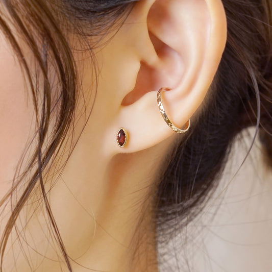 [Second Earrings] 18K Yellow Gold Garnet Marquise Cut Earrings