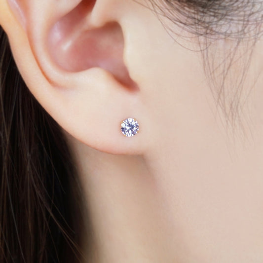 [Second Earrings] 18K Yellow Gold Lavender Cubic Zirconia Earrings