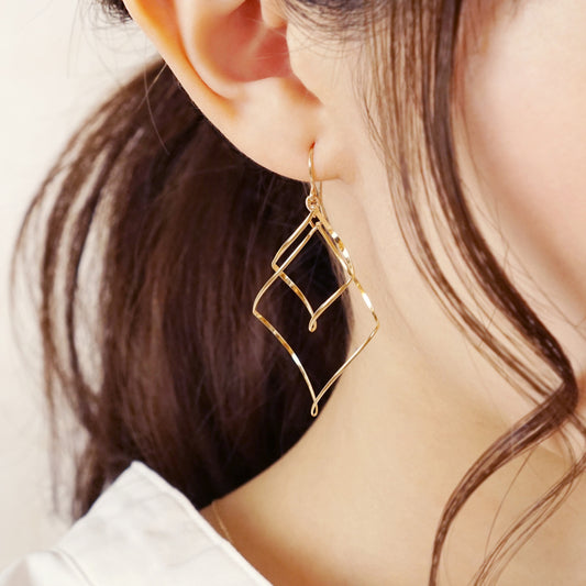 Gold Filled Double Rhombus Wire Earrings