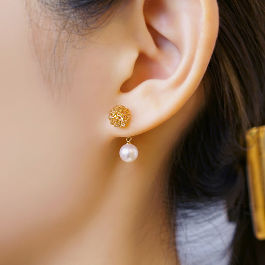 [Pannier] 18K/10K Yellow Gold Pearl Flower Shaped Earrings