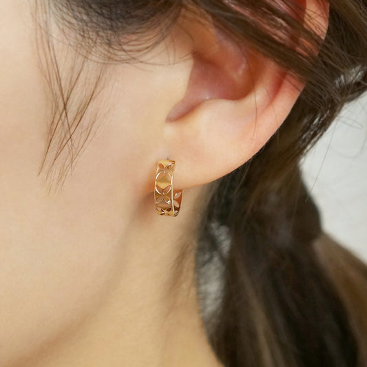 18K/10K Yellow Gold Flower Punching Hoop Earrings