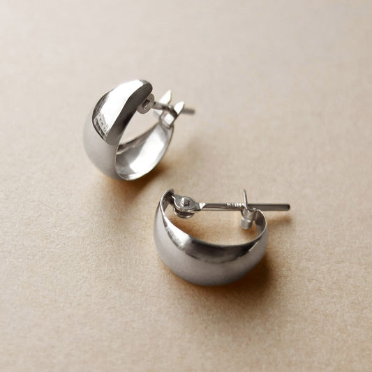 14K/10K White Gold Chunky Mini Hoop Earrings