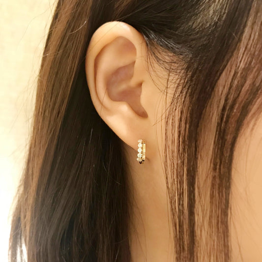 [Pannier] 18K/10K Yellow Gold Pearl & Cube Earrings