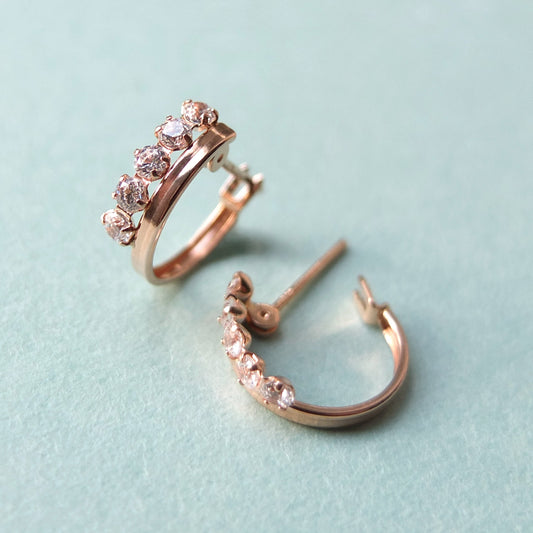 18K/10K Rose Gold Cubic Zirconia Hoop Earrings