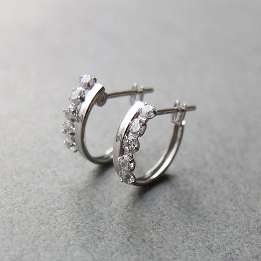 14K/10K White Gold Cubic Zirconia Hoop Earrings