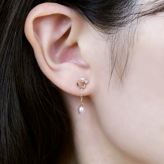 18K/10K Rose Gold Freshwater Pearl Swinging Earrings