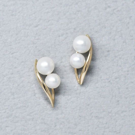 18K/10K Yellow Gold Freshwater Pearl Twisted Earrings