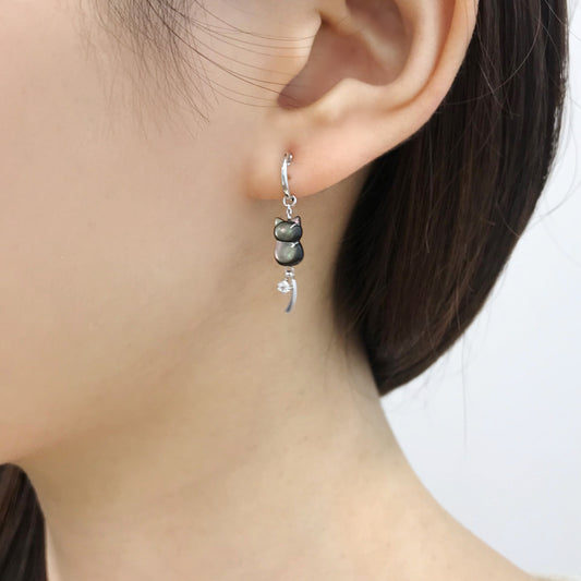 [Palette] 14K White Gold Black Shell Cat Charms