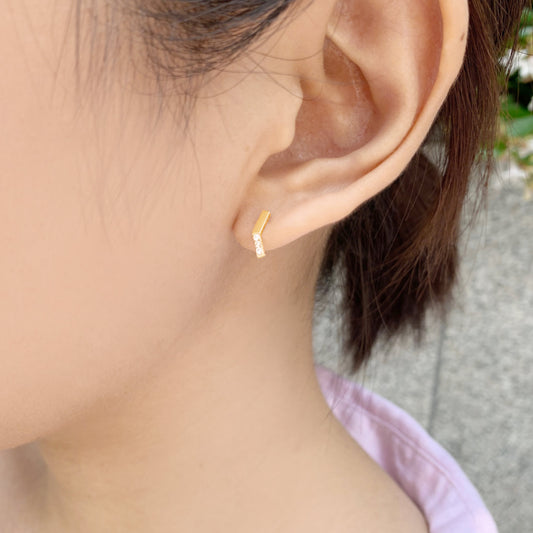 18K/10K Yellow Gold Diamond V-Shaped Bar Earrings