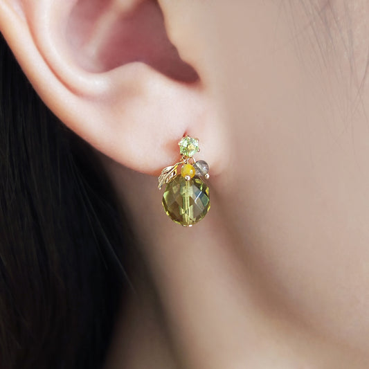 [Palette] 10K Yellow Gold Green Amber Charms