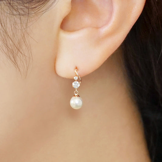 10K Swinging Shell Pearl Earrings (Rose Gold)
