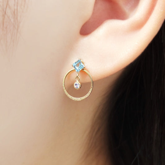 18K/10K Swiss Blue Topaz Circle 2Way Earrings (Yellow Gold)